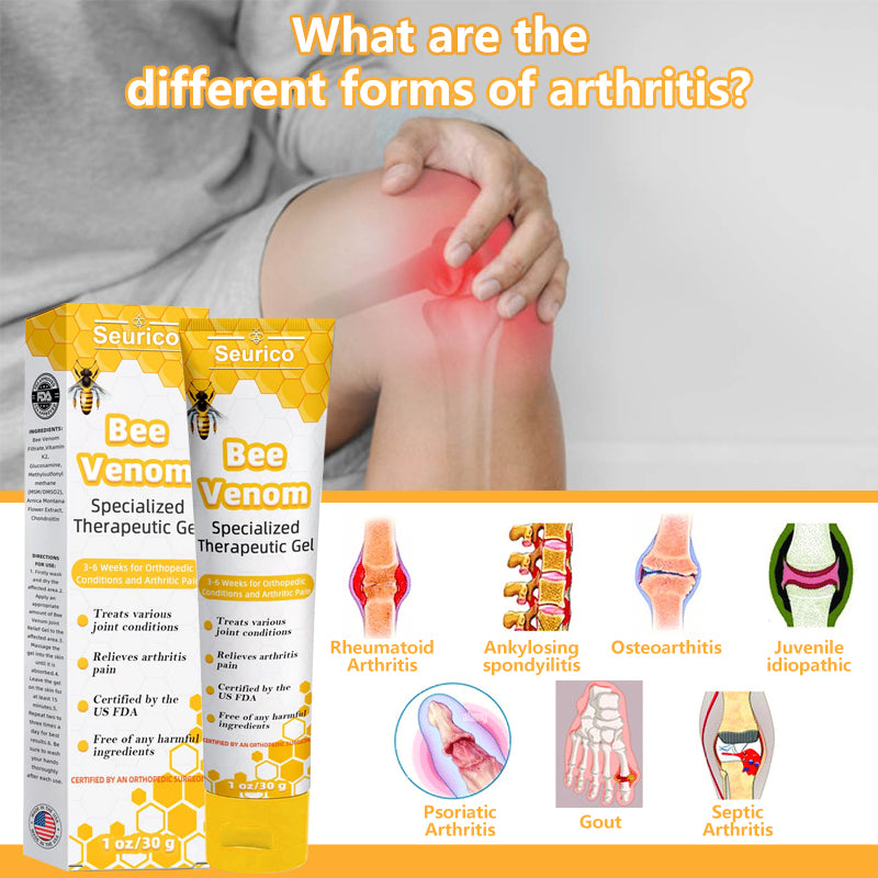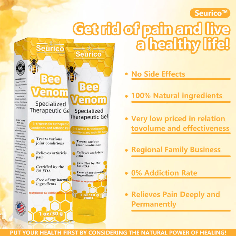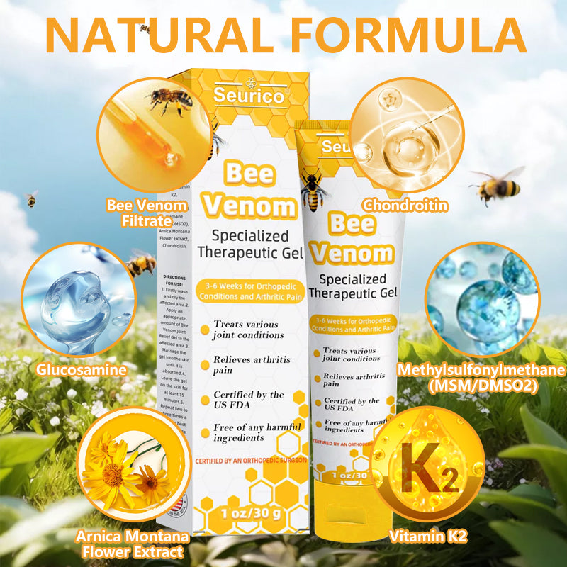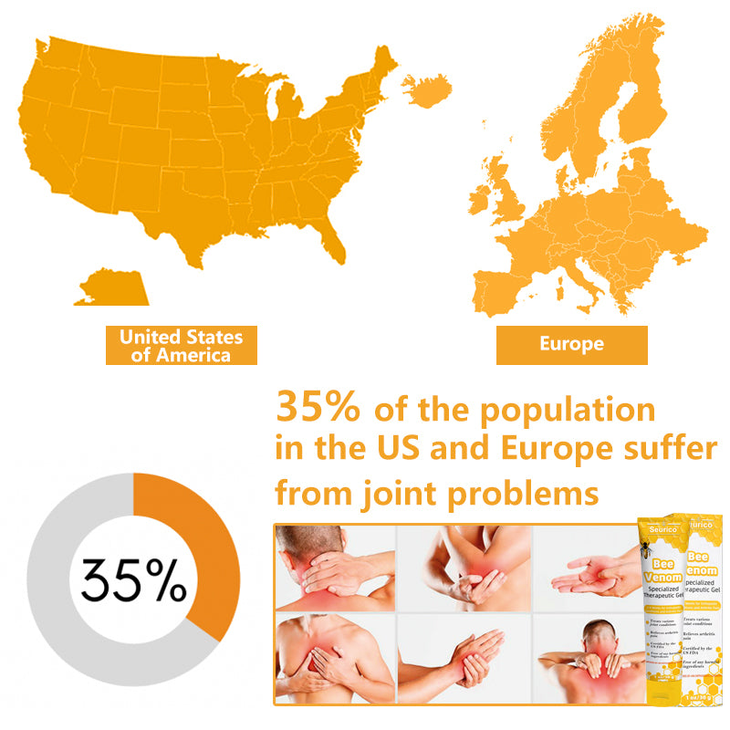 According to statistics,35% of the population in the US and Europe suffer from joint problems,with varying degrees of joint problems in every five people.The milder cases include arthritis, rheumatism, and gout, with symptoms such as pain, stiffness, swelling, difficulty in movement, fatigue, and loss of range of motion.Severe cases can result in joint deformities, fever, and intense joint pain, which can lead to long-term pain and disability. In extreme cases, orthopedic diseases can even lead to life-threatening complications.Seurico™ Bee Venom Joint and Bone Therapy Gel is renowned for its effectiveness in treating a broad range of orthopedic issues.