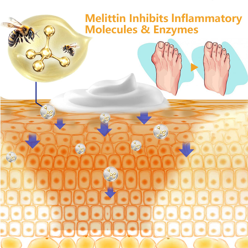 - Melittin in bee venom has a strong anti-inflammatory effect, which can reduce the inflammatory response of arthritis, thereby reducing joint pain and swelling, and improving joint mobility