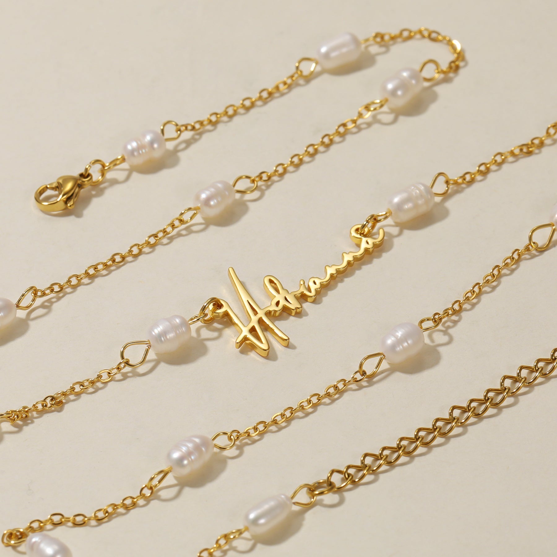 Monique Script Name Necklace w/ Pearl Link Chain